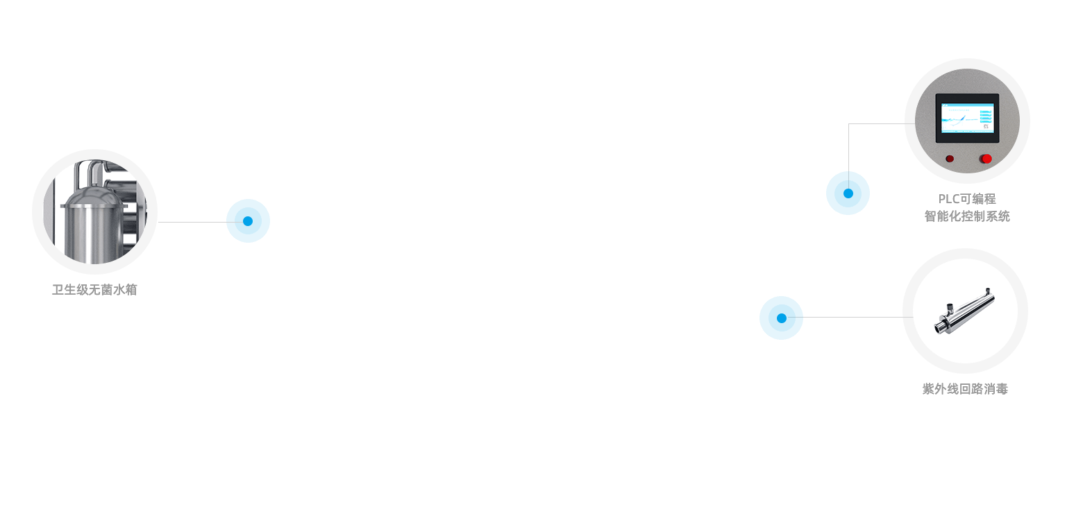 組合殺菌模式,采用臭氧和紫外線的在線滅菌,有效避免管路中細(xì)菌滋生和生物膜形成